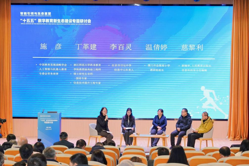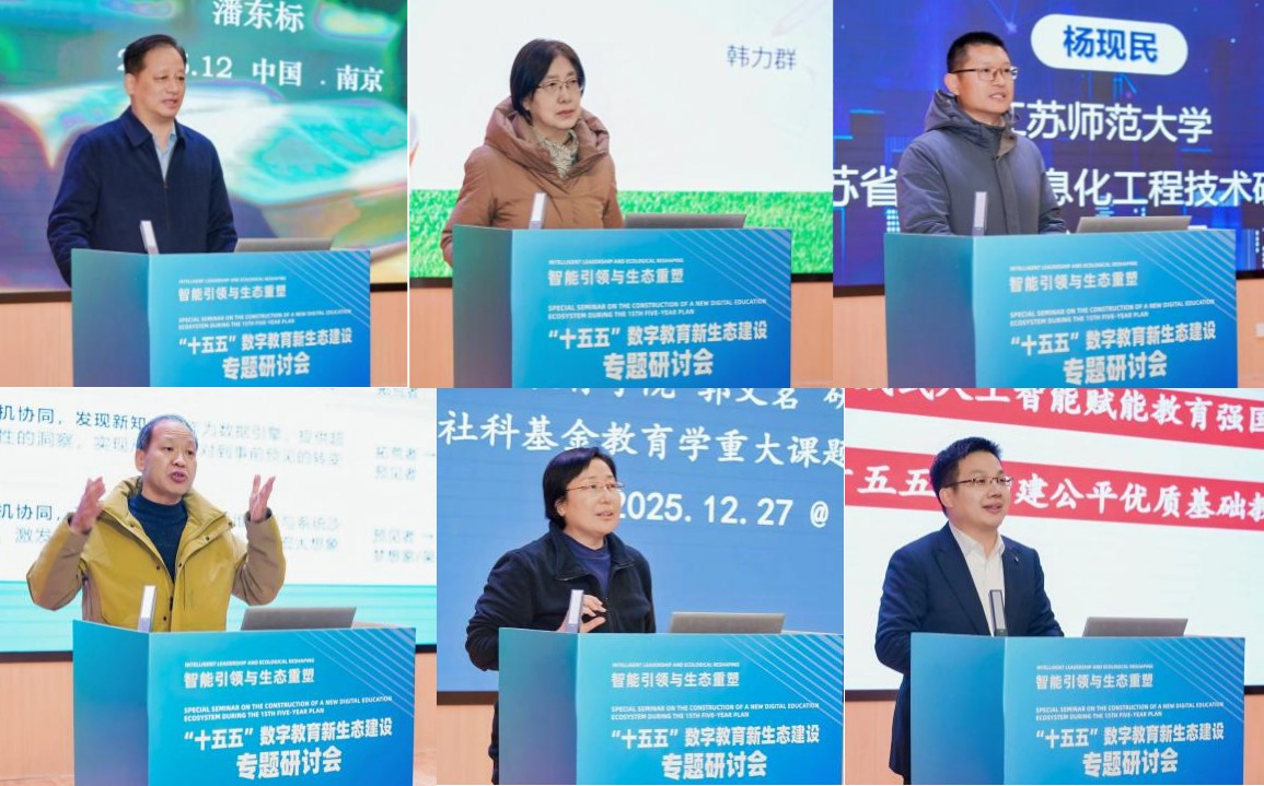 在国家“十四五”规划圆满收官、“十五五”规划谋篇布局的关键时期,为深入贯彻落实关于“推进人工智能全学段教育和全社会通识教育,源源不断地培养高素质人才”的重要指示精神,积极响应国家教育数字化战略行动部署,“‘十五五’数字教育新生态建设专题研讨会”12月27日在南京市雨花台区南站中小学召开。会议由中国教育发展战略学会教育政策与规划专业委员会与江苏省教育信息化与数据管理中心联合主办,以“智能引领与生态重塑”为主题,汇聚来自京、沪、渝,以及冀、晋、蒙、浙、皖、闽、赣、鲁、湘、粤、桂、琼、川、甘等17个省(区、市)教育行政部门负责人、高校专家学者及一线校长教师300多人参会。与会代表聚焦人工智能时代教育发展的根本性、前瞻性问题,重点围绕“未来人才核心素养如何界定”“教师角色与能力如何重塑”“技术应用如何兼顾公平与伦理”等议题展开深入研讨,共商发展路径鼎金投资,凝聚行动共识。